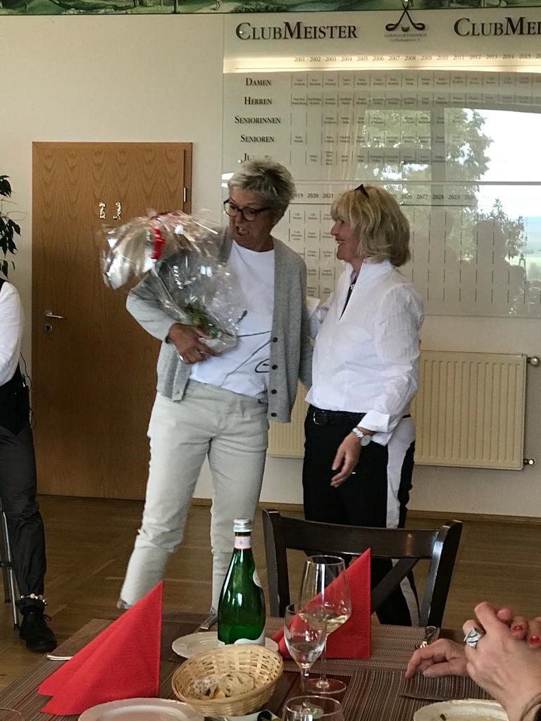 Nach dem Spiel trafen sich alle Golfrinnen in der Gastronomie. Nach einem guten Essen rief Angela Tautz zur Siegerehrung und teilte den Anwesenden mit, dass in 4 Wertungsklassen gespielt wurde und es auch mehrere Sonderwertungen zu gewinnen gab. Die Klasse C gewann Martina Watterodt vom GC Neustadt vor Margit Hotzel vom GR Weimarer Land und Antje Werneburg aus Eisenach. In der Klasse B konnte sich Ines Tonndorf vor Kati Rommel beide vom GC Eisenach, vor Andrea Springer-Teichmann vom GC Neustadt, durchsetzen. Der Sieg in der Klasse A ging an Heike Bendrich vom GC Eisenach, Sie konnte Karin Neumann ebenfalls aus unserem Verein und Marlies Schreiber vom GC Fulda Rhön auf die Plätze verweisen. Die beste Runde des Tages und somit auch Gewinnerin der Bruttowertung, spielte Astrid Bergmann vom Golfresort Weimarer Land, Sie gewann vor Corinna Wulf vom Thüringer GC und Gabriele Polke vom GC Fulda Rhön.