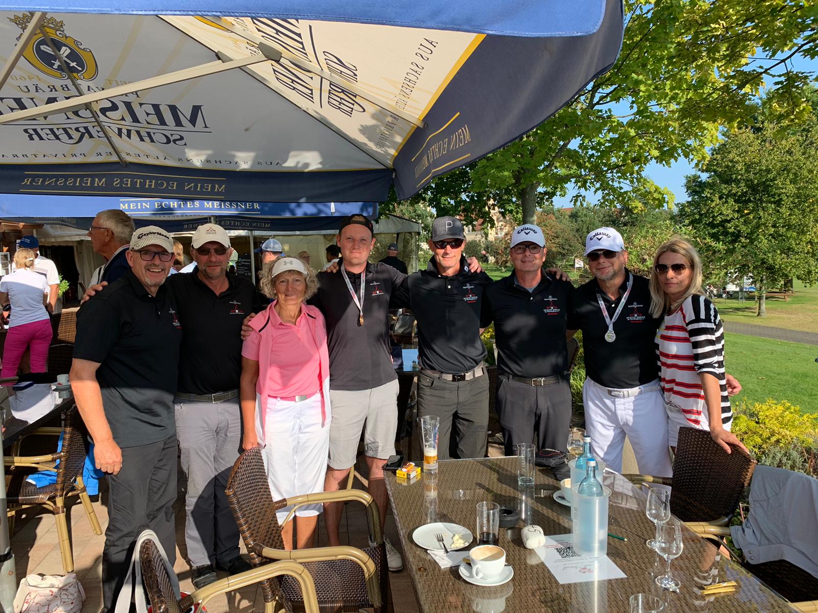 Nach einer Einspielrunde am Freitag ging es am Samstag auf die Erste Turnier Runde. Hier bestätigte sich der Eindruck, aus der Proberunde, eines sehr gut gepflegten Platzes, der allerdings auch sehr schwer zu spielen ist. Gefordert war präzises Spiel, da sehr oft rechts und auch links Ausgrenzen gesteckt sind. Auch Bunker und Wasserhindernisse sollten das Spiel mehr als erschweren. Man erkannte sehr schnell, dass Spieler mit Platzkenntnis hier große Vorteile haben werden. Trotzdem konnte Alexander den ersten Tag als Dritter abschließen. Thomas Meyer spielte am Samstag die beste Runde unseres Teams und hielt somit Anschluss an die Führenden. Nach einer nicht so guten Nacht für alle (die Betten unseres Hotels waren wirklich nicht gut) ging es am Sonntag auf die entscheidenden 18 Loch. Chancen auf die Platzierungen oder auf Sieg hatten von uns noch Thomas und Alexander. Sonntag 16:30 Uhr war die Siegerehrung, wir waren alle aufgeregt und auf die Ergebnisse gespannt. Um so größer war die Freude, als in der Altersklasse 50 Herren, Thomas Meyer mit der besten Runde des Tages, den 2. Platz belegte und Alexander Simmes von allen Teilnehmern das drittbeste Ergebnis spielte und damit die Bronze Medaille nach Eisenach holen konnte. Somit konnten wir bei unserem ersten gemeinsamen Auftritt bei Einzelmeisterschaften unseres Verbandes zwei Medaillen gewinnen. Glückwunsch und Dank besonders an unsere Gewinner und ausdrücklich auch an alle Teilnehmer, für tolles Spiel, sehr gute Ergebnisse und unser gemeinsames mannschaftliches Auftreten. Es war ein tolles Erlebnis und wir freuen uns schon auf das nächste Jahr. Eventuell können wir ja mit noch mehr Teilnehmern aus unserem Club, „aufschlagen“😊 und unser Ergebnis aus diesem Jahr noch toppen.