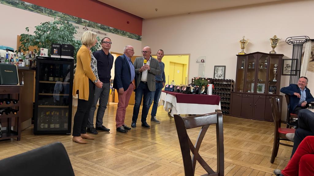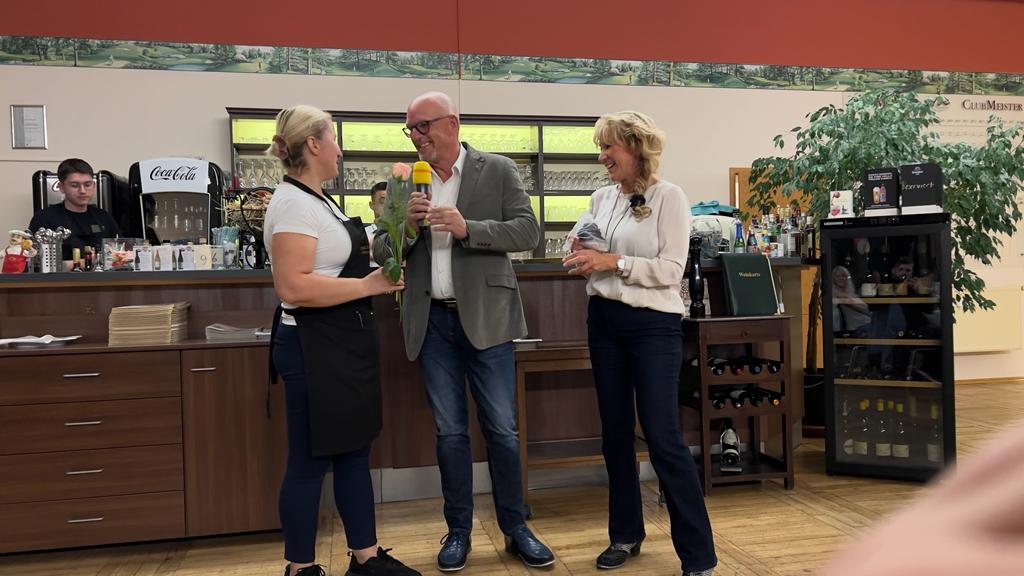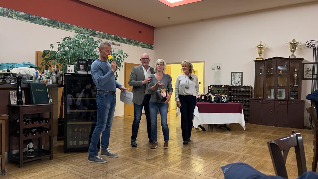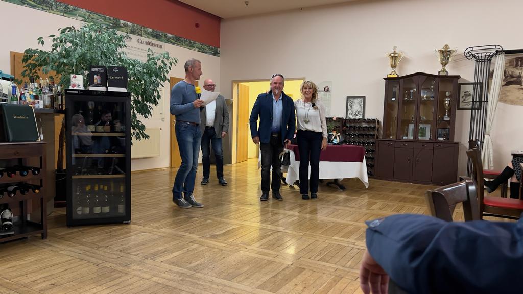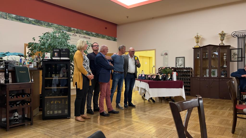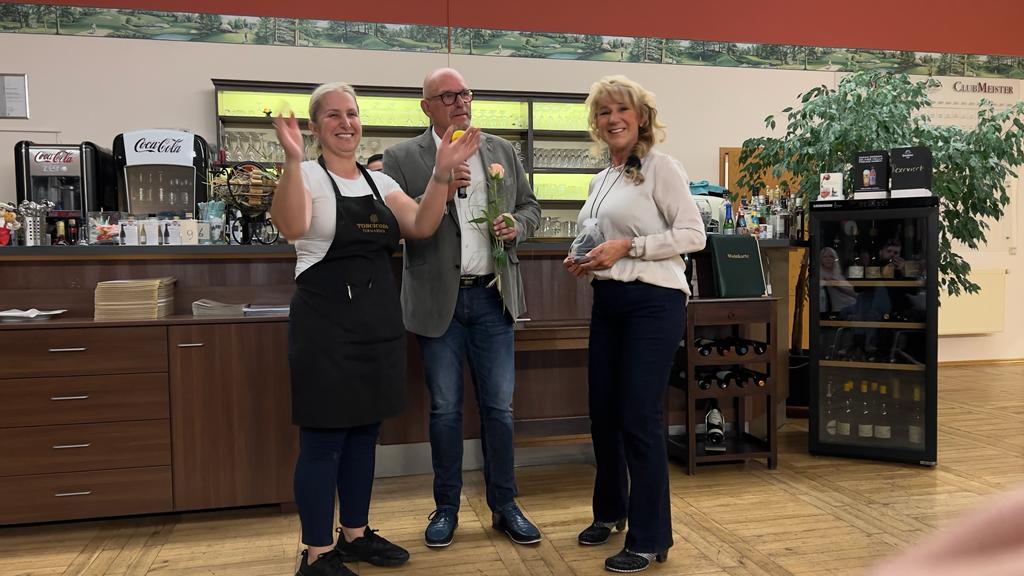 In seiner Rede bedankte sich der Präsident bei „seinen“ Vorstandskollegen, beim Pro, beim Sekretariat, bei den Greenkeepern und der Gastronomie für die angenehme und vertrauensvolle Zusammenarbeit im Jahr 2022. Er betonte ausdrücklich, dass erfolgreiches Arbeiten nur im Team funktionieren kann und dass genau dies bei uns hervorragend ausgeprägt ist. Großer Dank ging auch an alle Helferinnen und Helfer, die Kuchen gebacken, Brötchen geschmiert, Kaffee gekocht und alle Spielerinnen und Spieler zur Rundenverpflegung bedient und somit maßgeblich zum Erfolg des Turniers beigetragen haben.