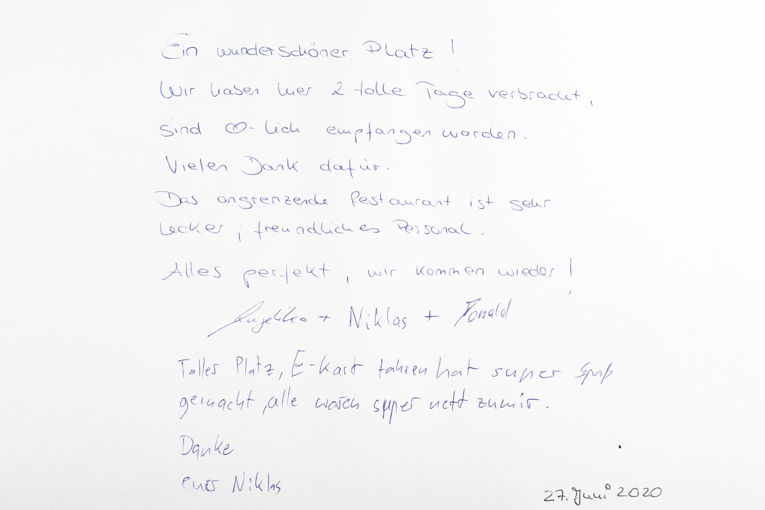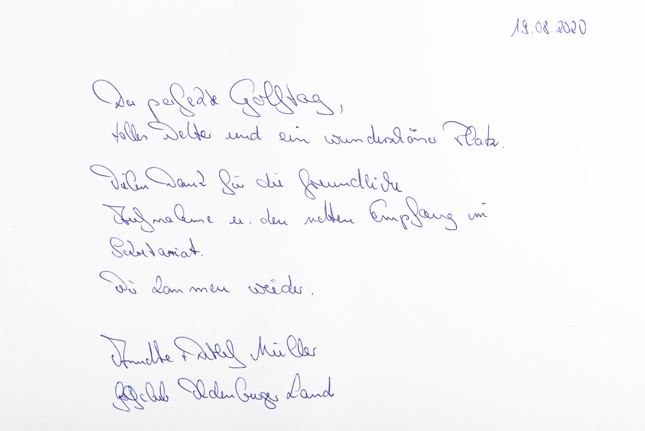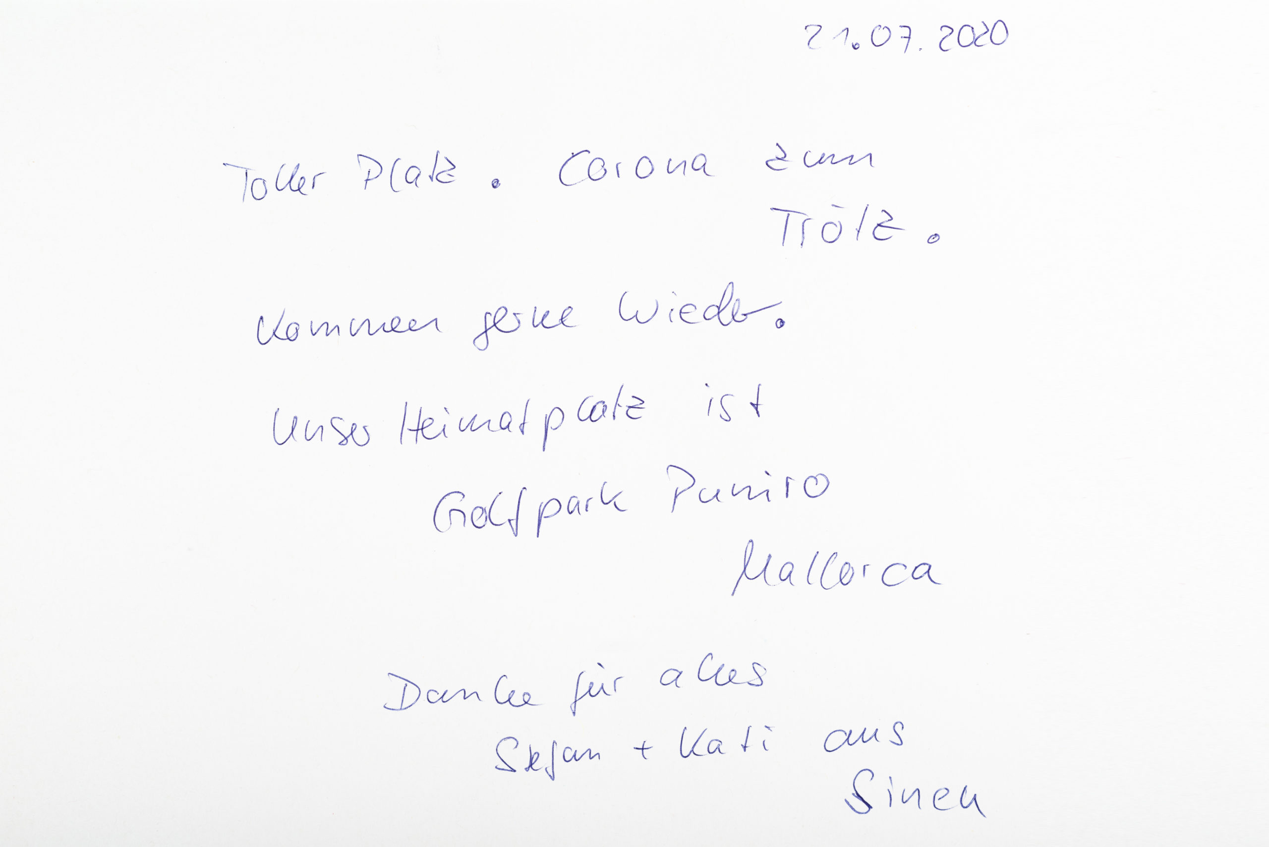 heute möchten wir einmal Dank sagen für das uns entgegengebrachte Vertrauen und die vielen positiven Rezensionen, die entweder bei Google, Facebook, Golf.de oder auch in unserem Gästebuch hinterlassen wurden. Dies zeigt uns, dass wir auf dem richtigen Weg sind. Auch wenn es garantiert noch einiges zu verbessern gibt, so haben wir zumindest eins erreicht, dass der überwiegende Teil unserer Gäste und Mitglieder sich bei uns wohl und gut aufgehoben fühlt. Da noch nie so viele positive Äußerungen wie in diesem Jahr in unser ausliegendes Gästebuch geschrieben wurden, haben wir Tobias Kromke gebeten, diese einmal abzufotografieren, um sie Euch auch mal auf diesem Weg vorstellen zu können. Hierfür unseren herzlichen Dank an Tobias Kromke! Das Geschriebene gibt den Weg für die kommenden Jahre vor. Ob Mitglied oder Gast, jeder soll sich hier wie zu Hause fühlen und von allen Verantwortlichen und Angestellten den Eindruck vermittelt bekommen, dass ein jeder Aufenthalt im Wartburg-Golfpark etwas Besonderes ist. Das ist unser Anspruch, unsere Aufgabe und unser Ziel. Sollten Sie einmal nicht dieses Gefühl haben, dann teilen Sie es uns bitte mit, denn nur so können wir lernen, uns stätig weiterentwickeln und das Niveau hochhalten.